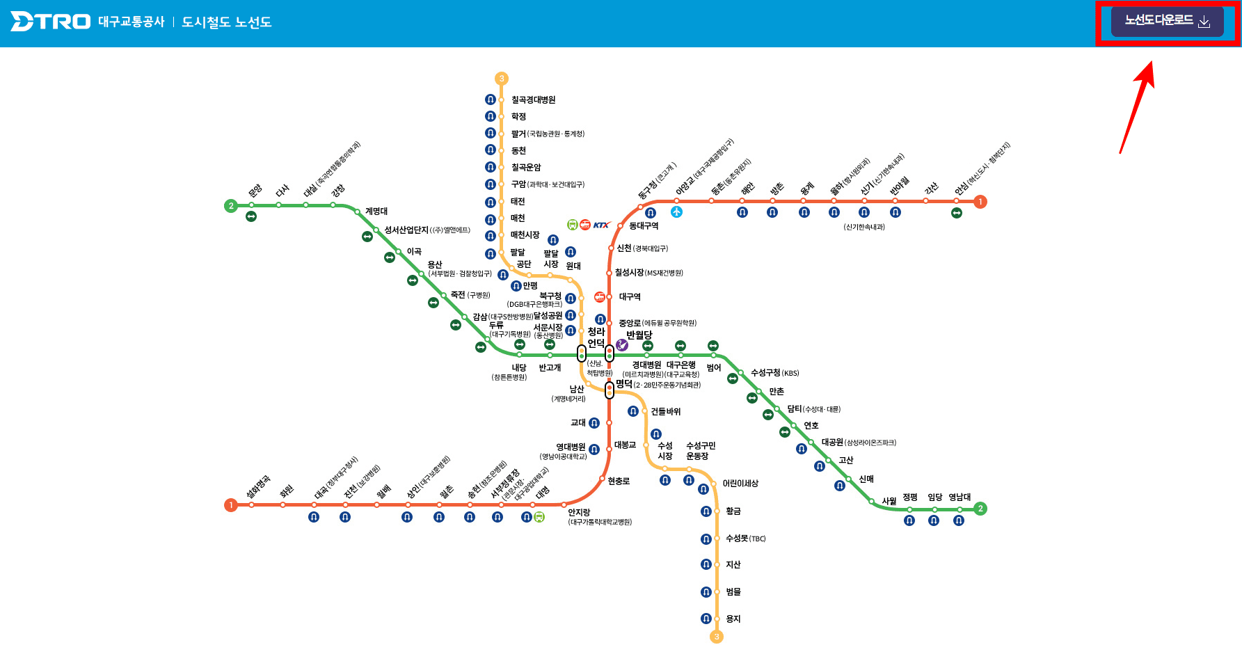 오늘은 대구교통공사에서 제공하는 대구 지하철 노선도 크게보기 그리고 검색 방법에 대해 자세히 안내해 보도록 하겠습니다.