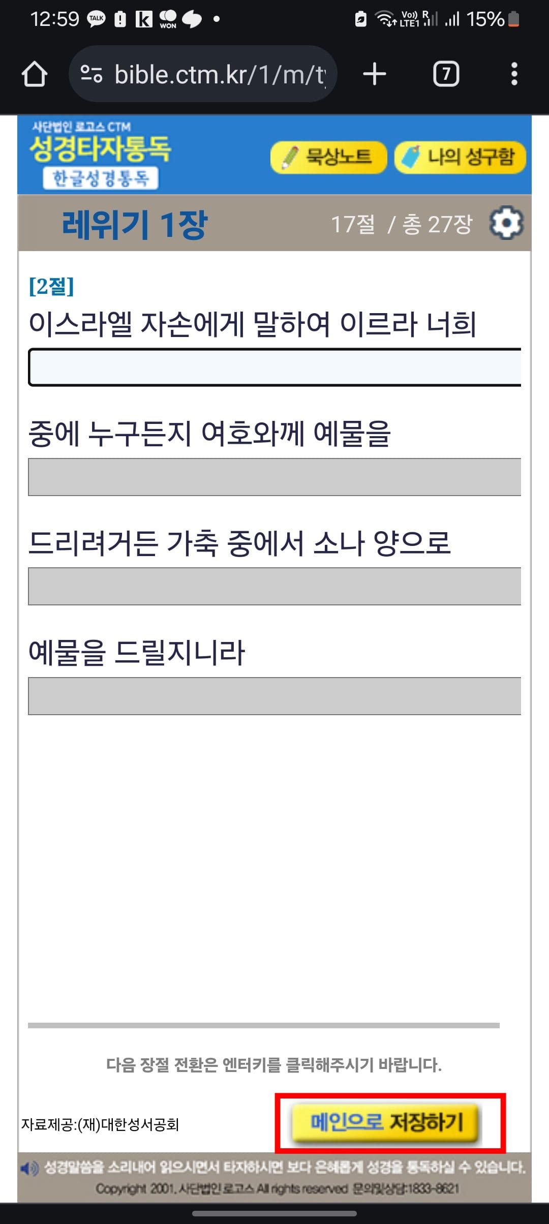 모바일에서 성경타자 통독