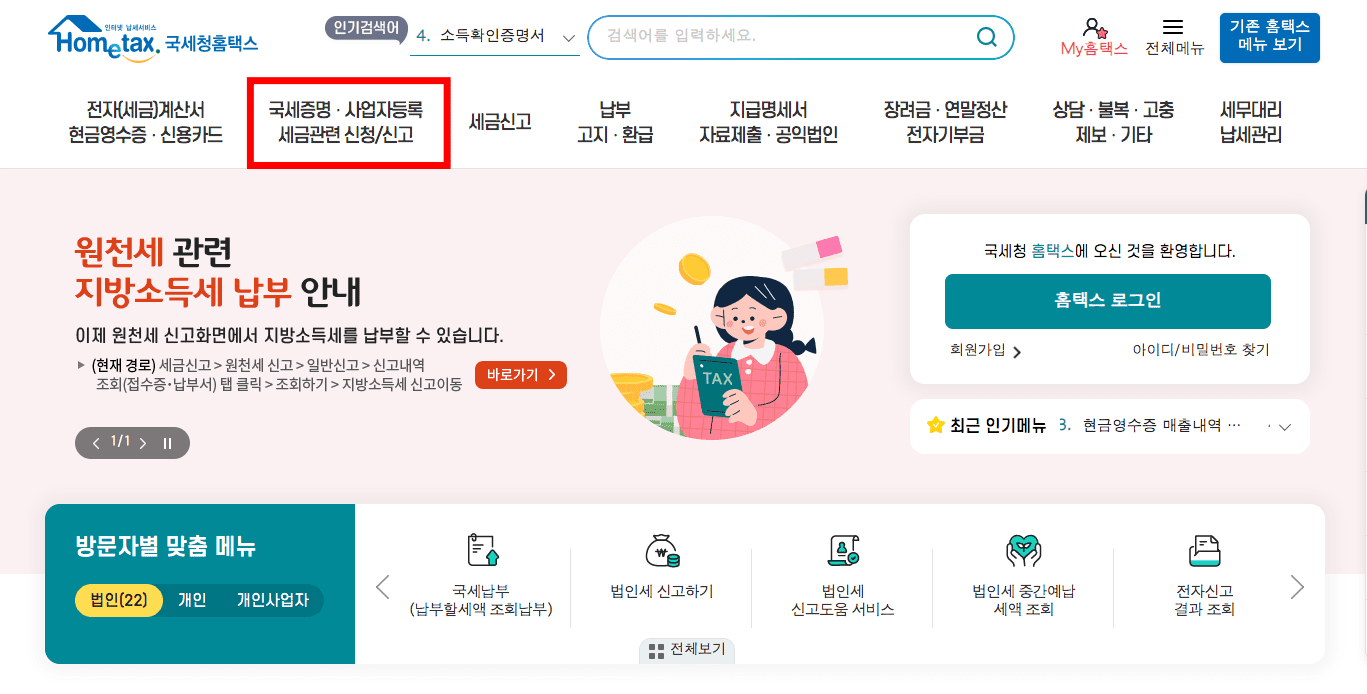 PC를 사용하여 소득금액증명서를 인터넷으로 발급하시려면 먼저 국세청 홈택스 홈페이지에 방문해야 합니다. 아래 링크를 통해 이동하시기 바랍니다.