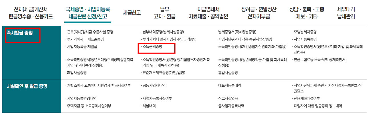 소득금액증명서 인터넷발급 (PC 및 모바일)