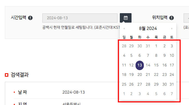 일출 일몰 시간 조회 3 - 기상청 날씨누리