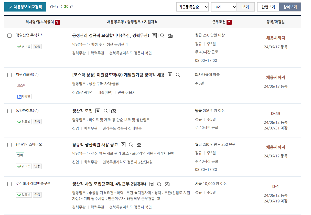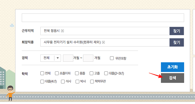 검색결과를 확인하시면 희망직종에서 선택한 채용정보와 관련된 채용정보들을 확인할 수 있으니 직접 확인해 보시기 바랍니다.