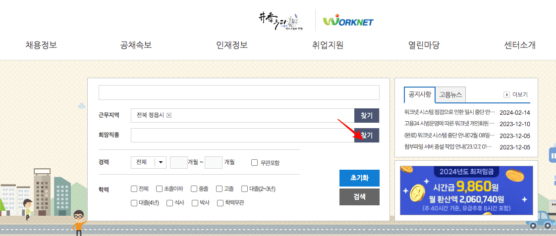 정읍시청 홈페이지 구인구직 정보 확인