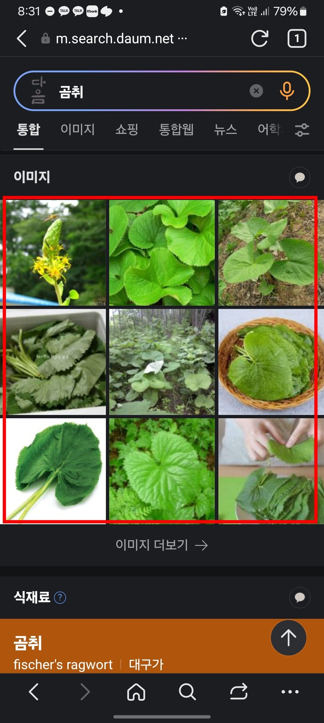 스크롤을 내려보면 관련된 이미지, 곰취의 분류와 칼로리, 영양성분, 보관법 등에 대해서도 확인할 수 있으니 직접 시도해 보시기 바랍니다.